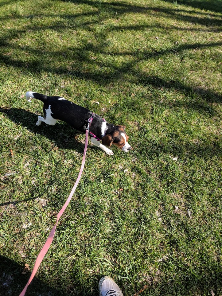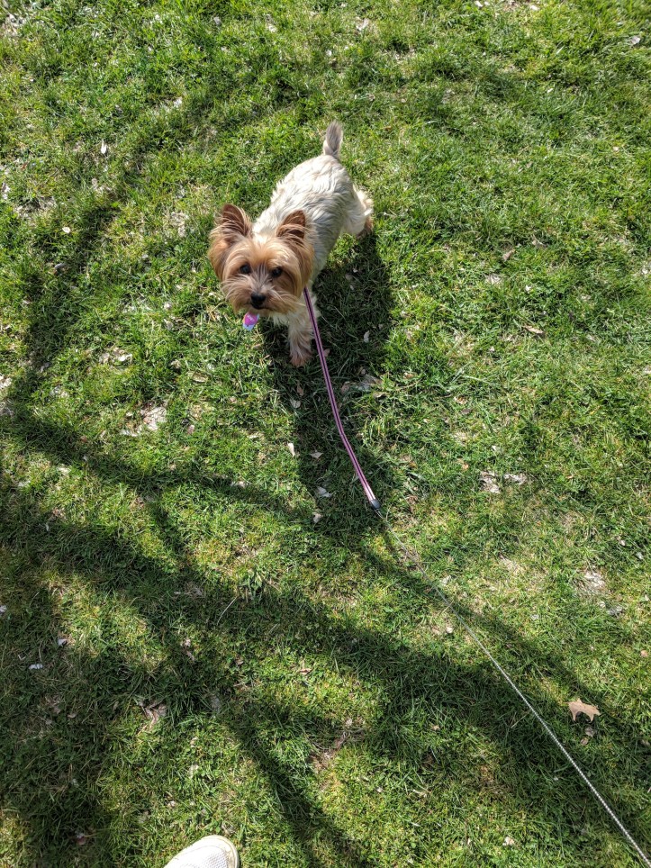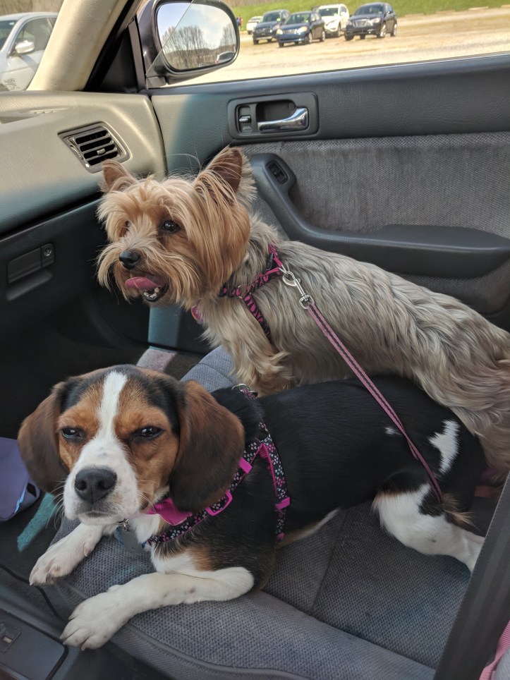Zoey is the Yorkie and Nissa(Knee-suh) is the Beaglier. Sorry there aren’t better pics, it was a chore keeping them untangled the whole time.